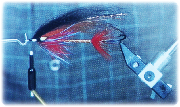 Bindt 2 jungle cock veertjes in aan de zijkanten en wikkel een netjes kopje met de binddraad en bindt de vlieg af. Het afbinden van een snakefly doe je door een lus te maken met de binddraad en daar de bobbinholder doorheen te steken en vervolgens de lus aan te trekken. Dit geeft dezelfde knoop als een halve steek dus wel een aantal knopen op elkaar leggen.
